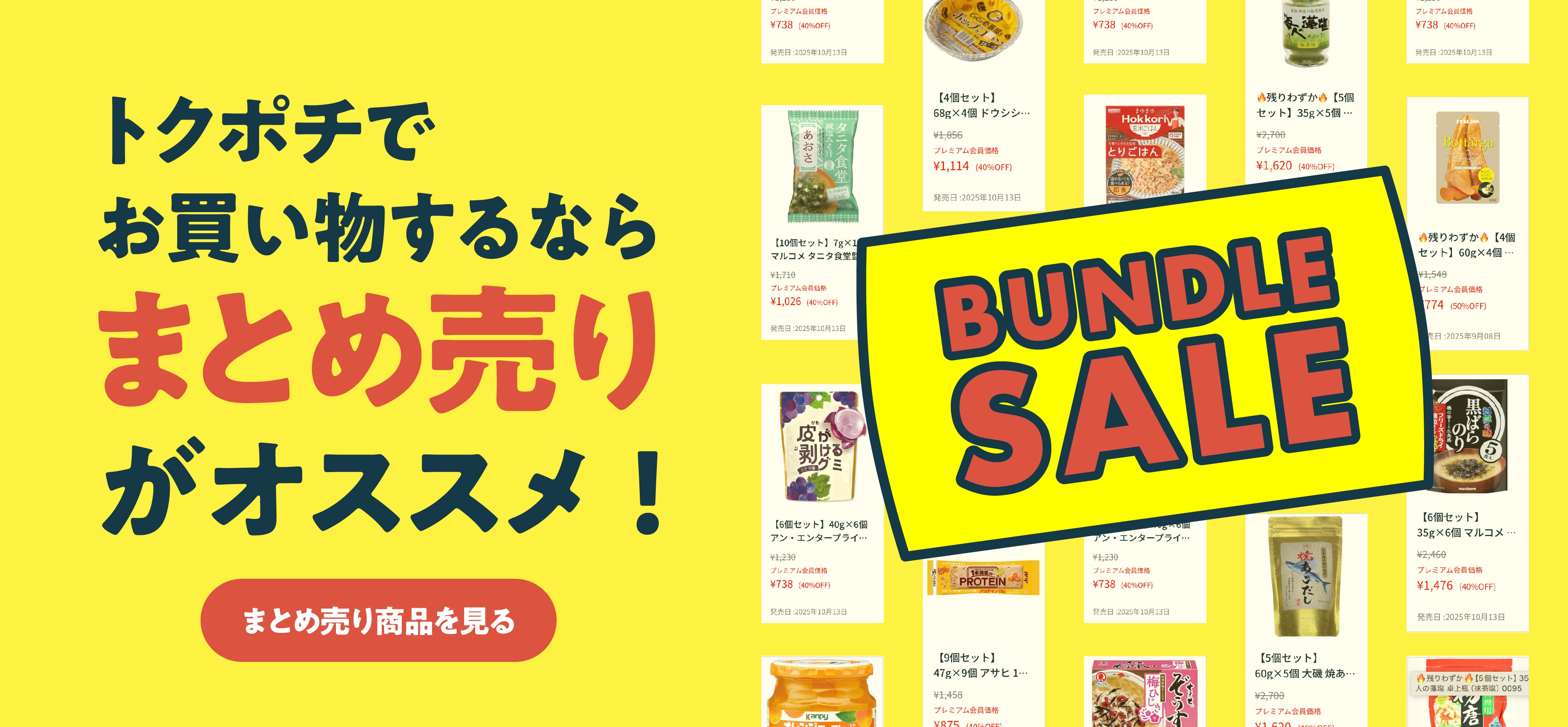 世の中には、賞味期限が「3分の1」や「3分の2」残っているにも関わらず一般流通から弾かれて撤去・廃棄されている食品がたくさん存在しています。その数、なんと年間で646万トン。この量は、国連世界食糧計画(WFP)が1年で世界中に行っている食品援助量の2倍にもなります。食べられるのに廃棄している量だけで「646万トン」です。トクポチではこの「賞味期限が残っているのに廃棄されている商品」を扱うことで「低価格」や「最大0円」での販売を実現しています。どうせ廃棄処分されるのであれば「タダでもいいので誰かの役に立つ商品になればいいな…」という思いからトクポチはスタートしています。