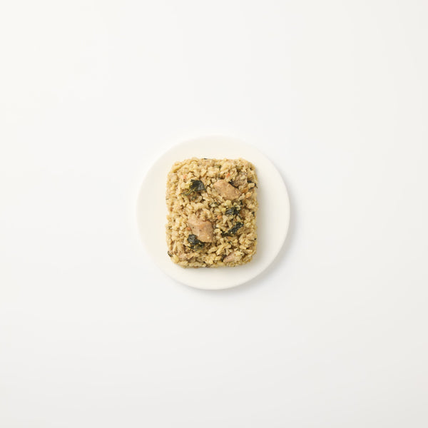 原材料名 | うるち米、鶏肉、舞茸、ほうれん草、豚肉、玄米、椎茸、もち米、人参、玉ねぎ、チーズ、干し海老、カレー粉、大豆油、ひまわり油、鰹出汁、昆布、お茶、胡椒 / V.C(一部に鶏肉、豚肉、乳、海老、大豆を含む) | |