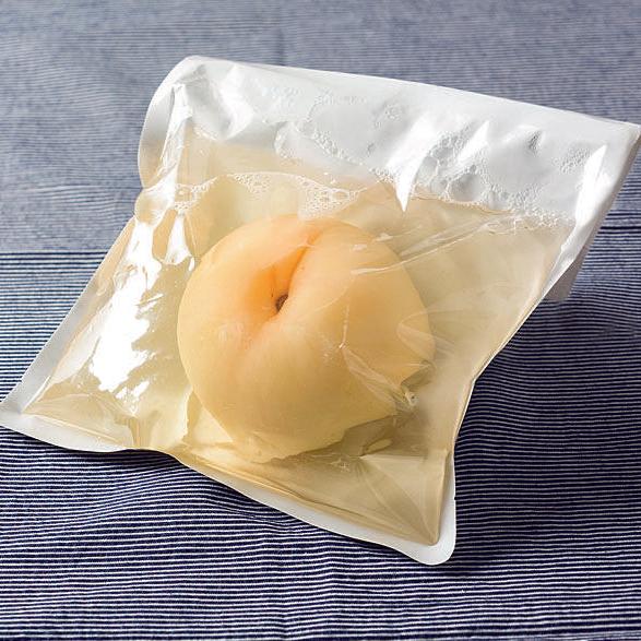 独自の『水熟製法』で桃を長期保存し、今までにない限りなく生に近い状態で1年中おいしくいただける桃に仕上げました。おかやまの白桃は6月中旬から9月上旬まで約15品種が順番に熟れてきます。大玉の「おかやま白桃」を保存性の高いパックに。果実の自然の甘さと食感を味わっていただけるように極力甘さを抑え、「皮付き」「種あり」のまま「生の風味」で限りなく「生」に近い桃を丸ごと贅沢に詰め込みました。桃の香りが高いシロップはそのまま冷やして飲んでいただけます。温めると桃茶や紅茶に、炭酸やスパークリングと合わせたり、ヨーグルトとアレンジしてどうぞ。